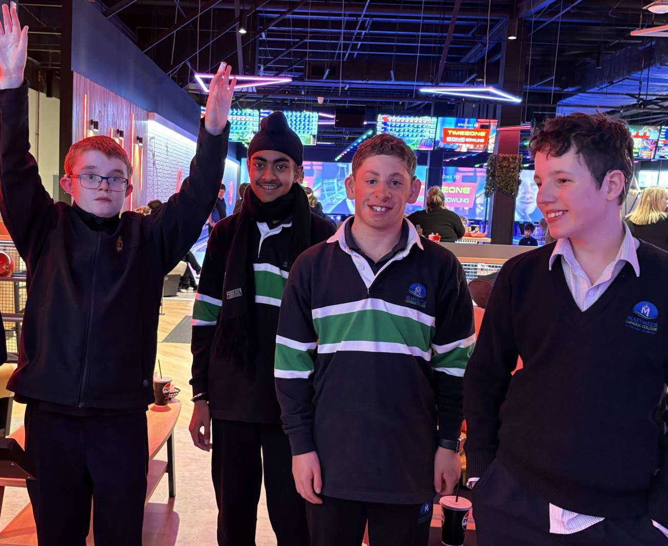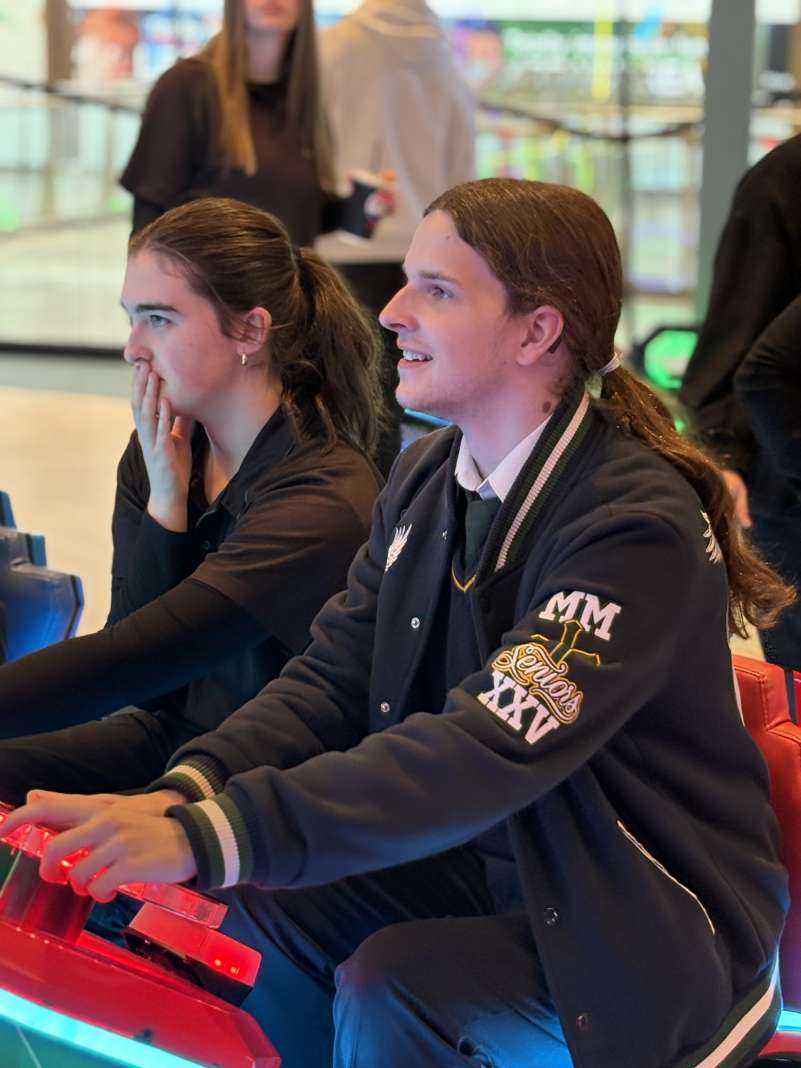 Following the Mass, the afternoon was filled with joy and togetherness as students and staff participated in a variety of fun activities. Bowling, arcade games, and laser-tag brought laughter and excitement.