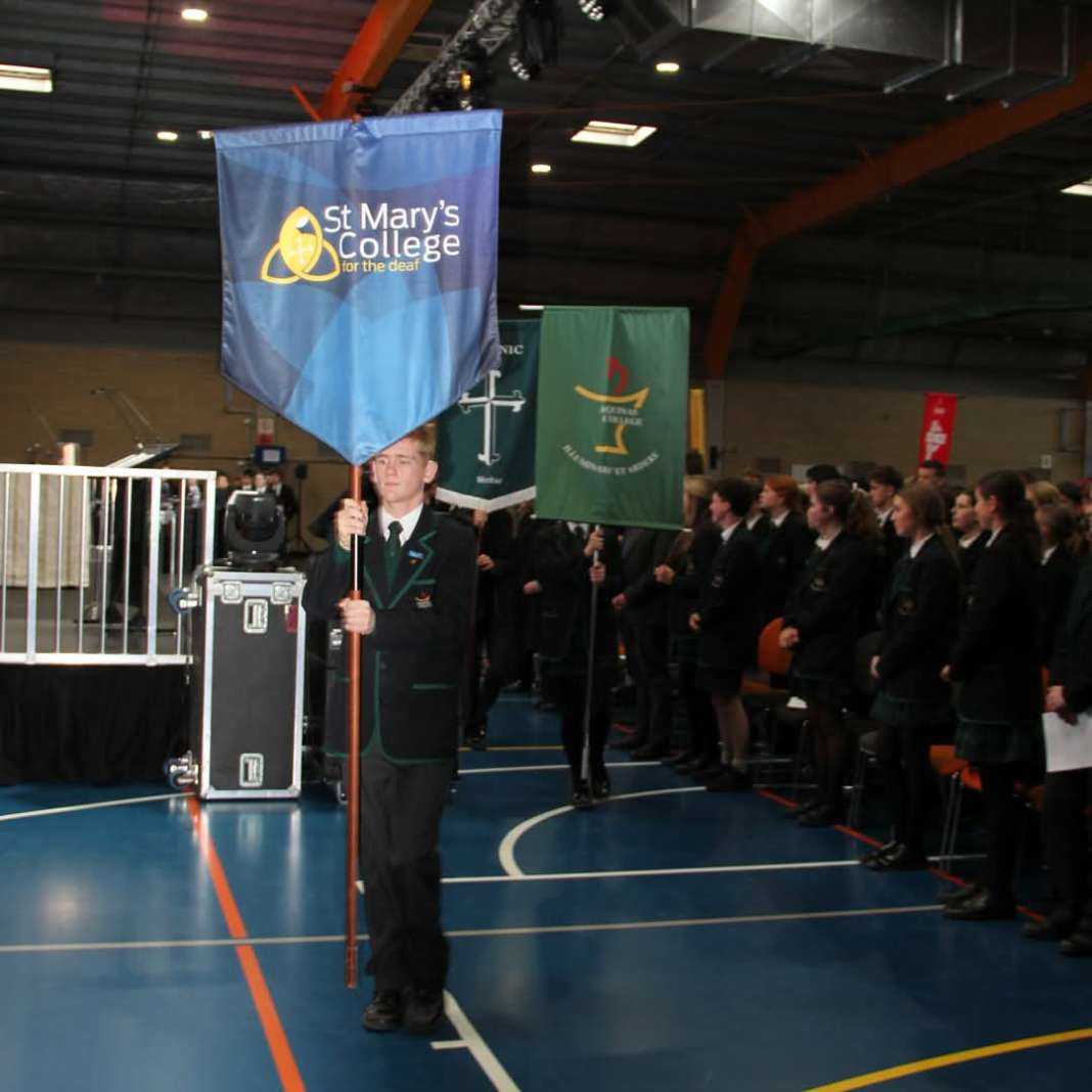 Thomas displayed his excellent leadership skills by carrying the St Mary’s banner at the Mass.