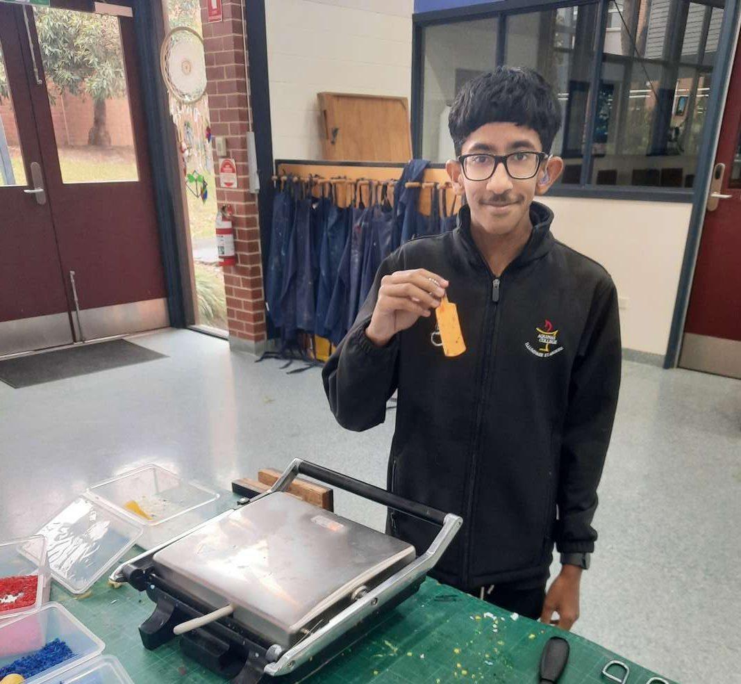 The year 8’s were making key rings in Design and Technology classes during the term by using recycled plastics.