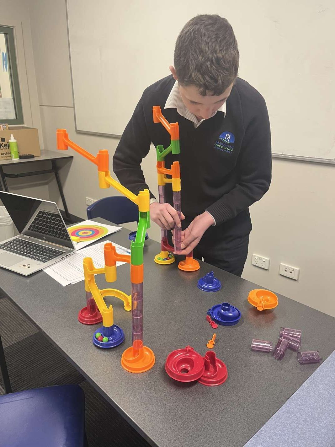 Our Year 8 students recently worked in teams, to design and build their own marble run tracks.